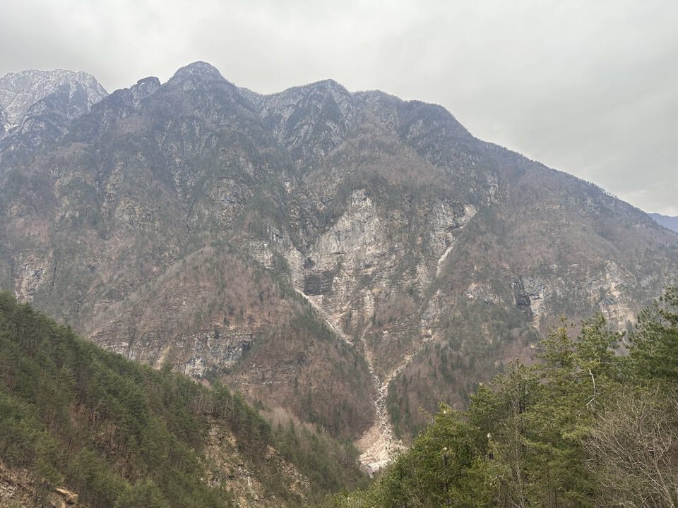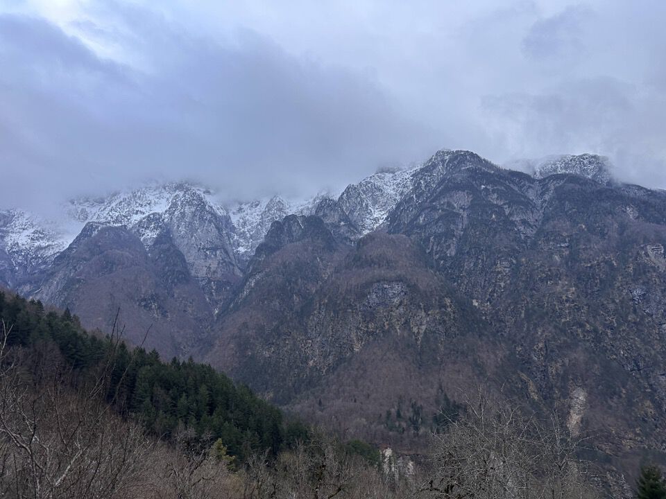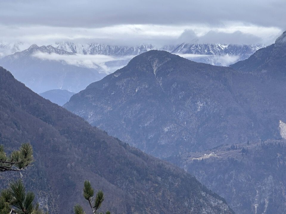 Foto di qualità agghiacciante, ma poco importa: vedo Cuestemulìn con lo Jouf; in centro foto il riu da le Cjamoçe che abbiamo attraversato durante la percorrenza del sentiero Patòc - Zè.