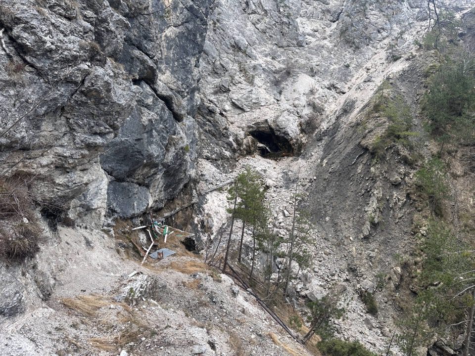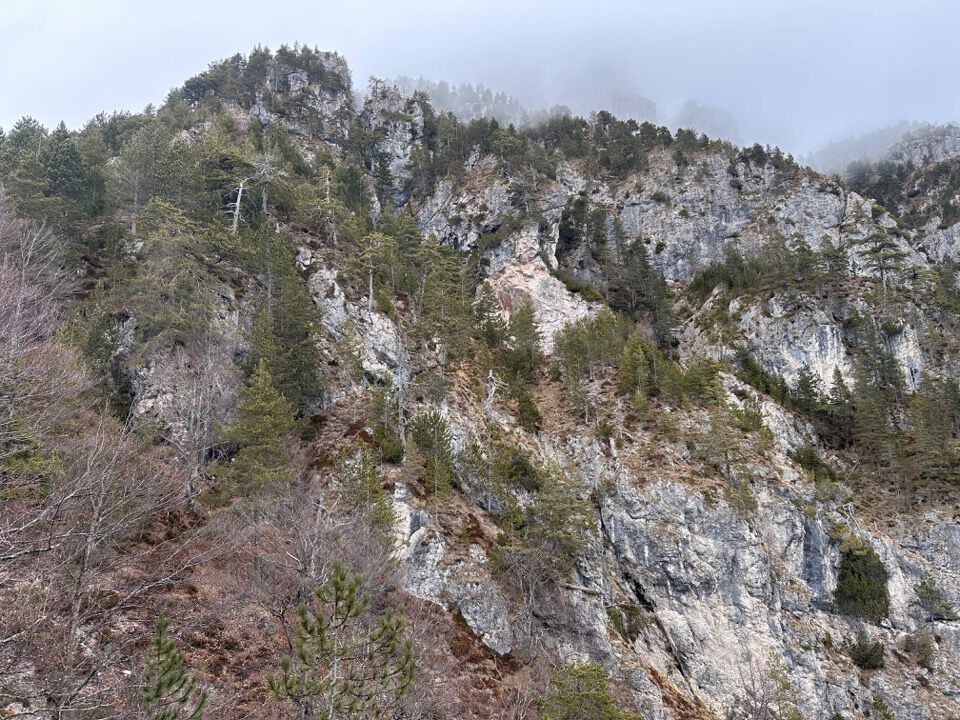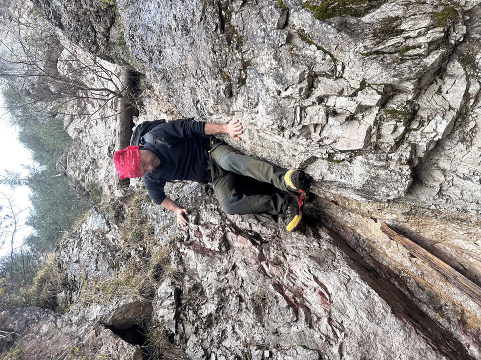 Salendo lungo la Costa Not vediamo dall'altra parte un misterioso buco nella roccia con qualcosa di colore rosso acceso... anin a viodi?
