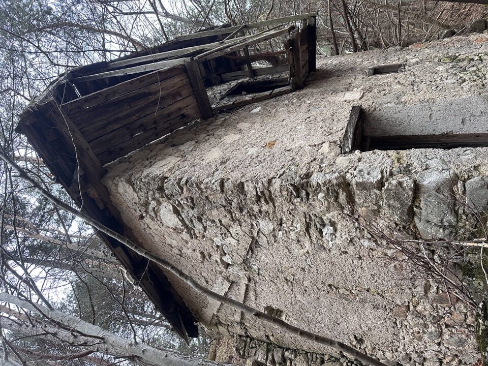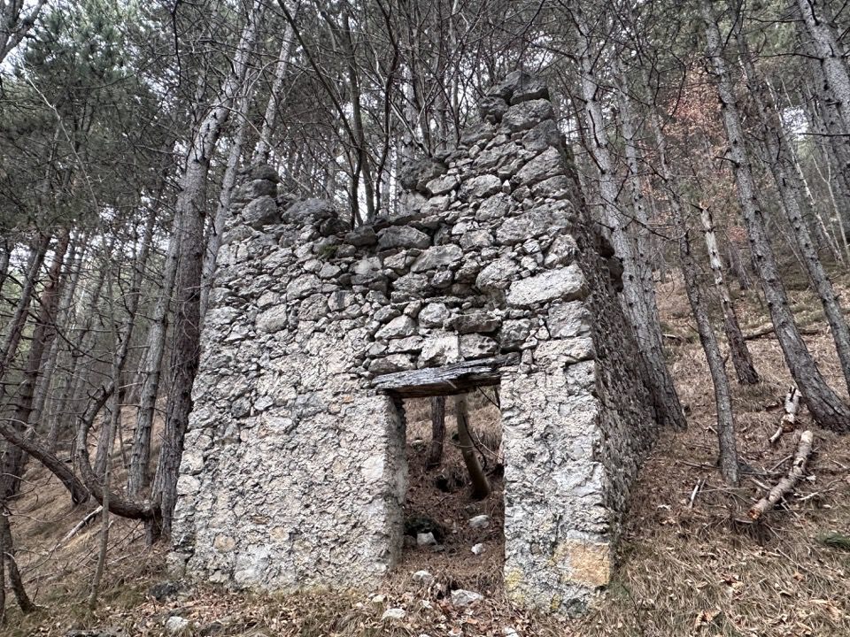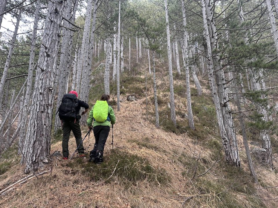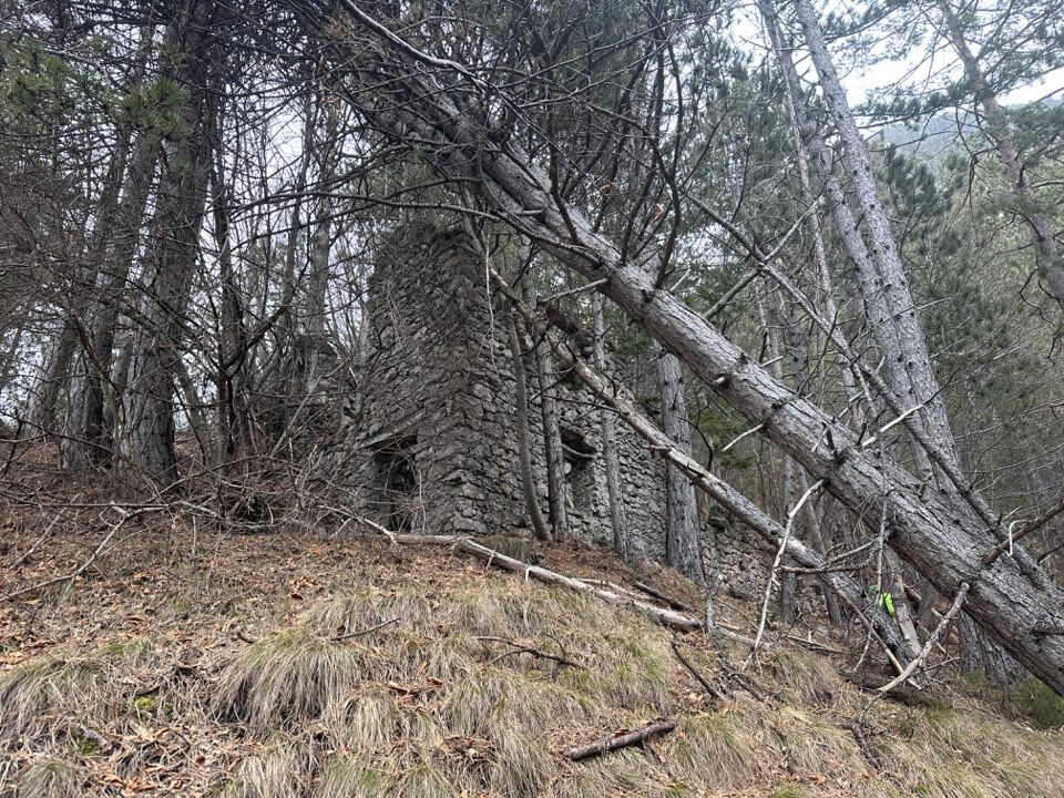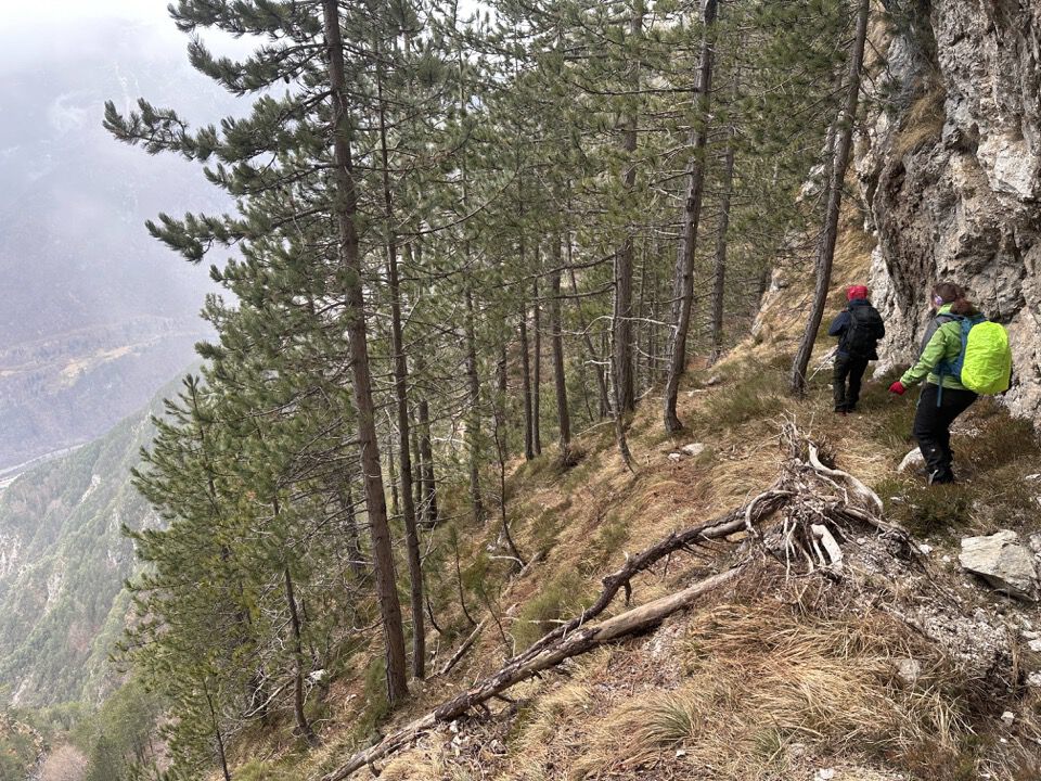 Con qualche titubanza iniziamo a salire per la costa sud che sovrasta lo stavolo Canine: terreno molto ripido e tagli spariti, ma ad una certa troviamo i resti di una salina di cacciatori. Noi ci si accontenta di poco... (ma non serve altro!).