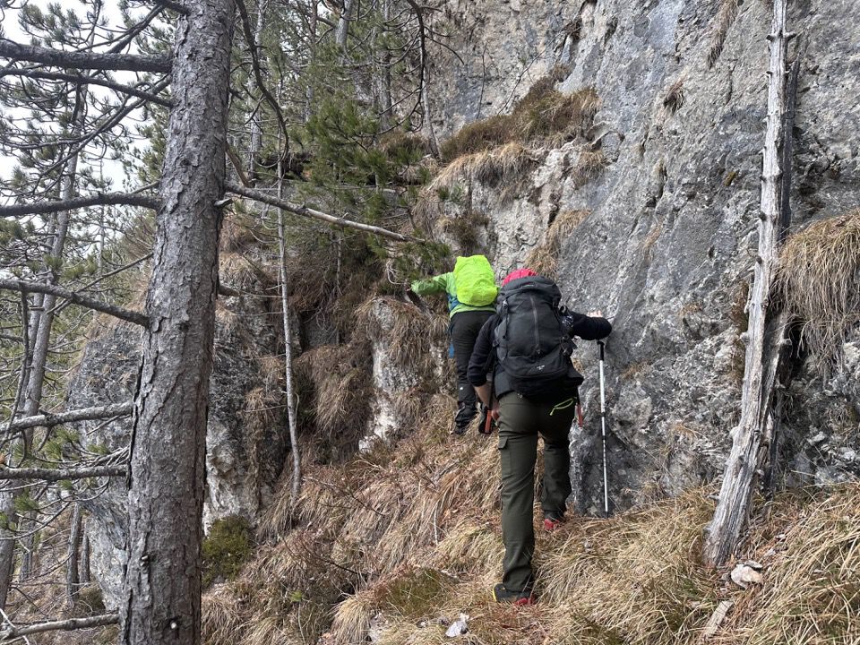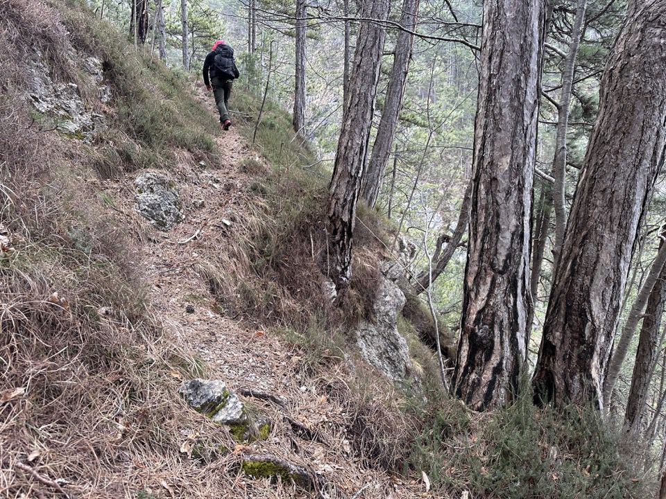 La cosa è molto istruttiva: sfruttando i pochi punti deboli della montagna il sentiero non è mai ripido, a differenza del percorso diretto per il costone sud. Grazie dotôr!