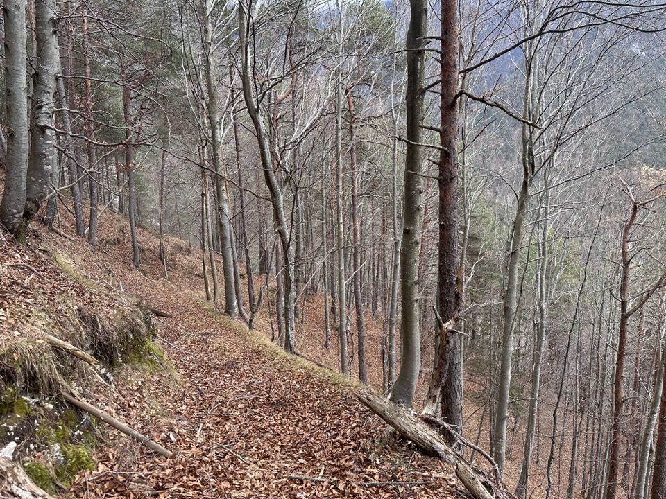 Seguiamo un ottimo sentiero che ci fa salire e ad una certa raggiungiamo un bivio; a sx credo si vada a Canìne, ma la traccia di destra è troppo bella: seguiamola per un pezzetto dai.