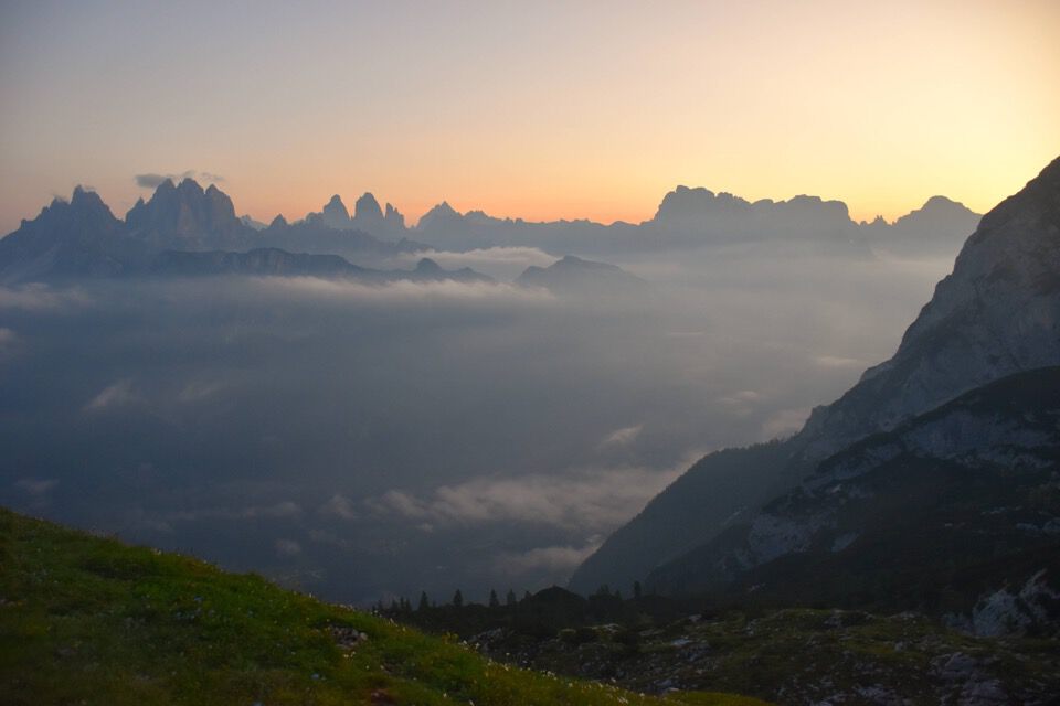 Ci svegliamo assistendo ad una bellissima alba verso le Dolomiti Auronziane.