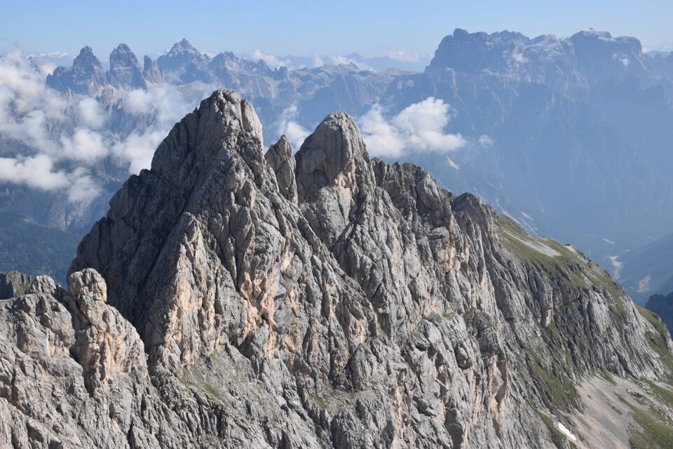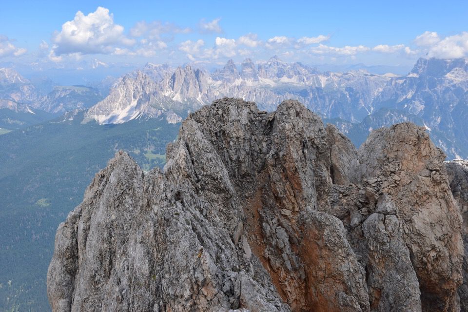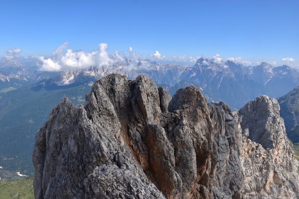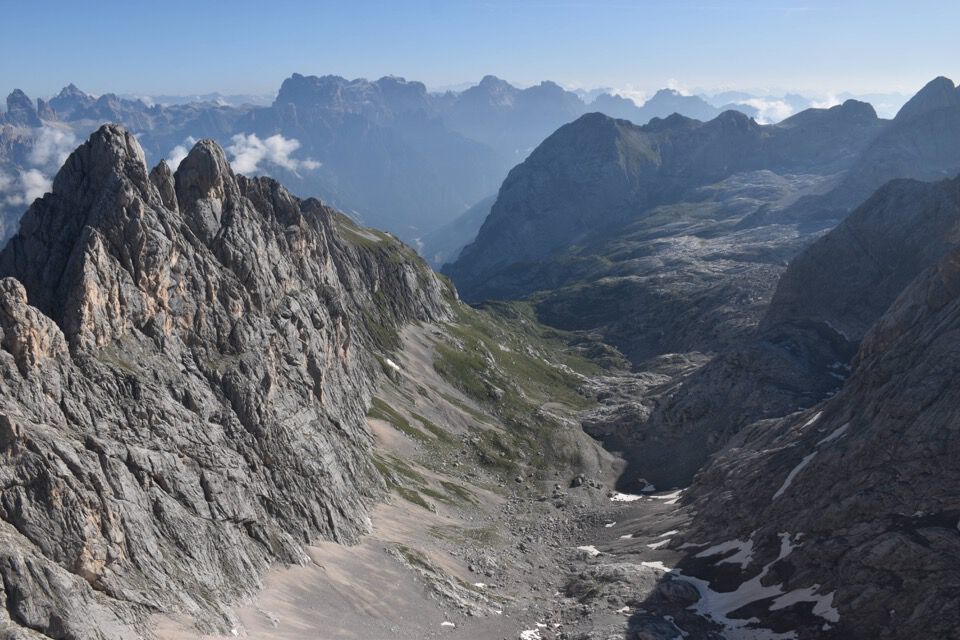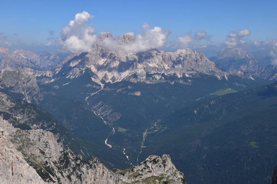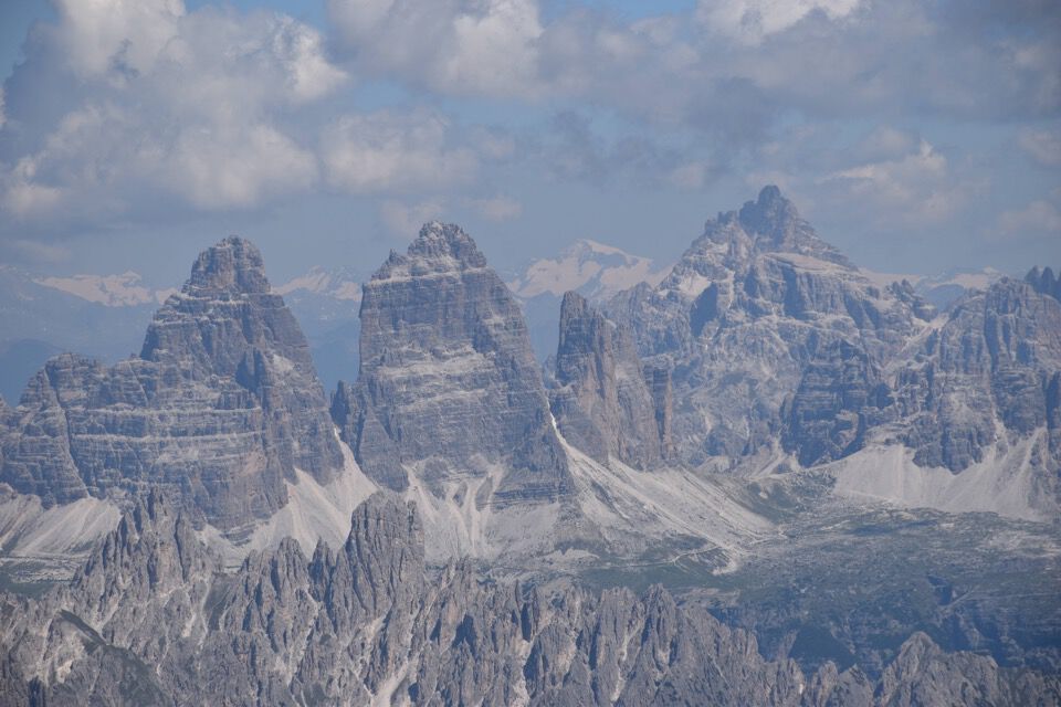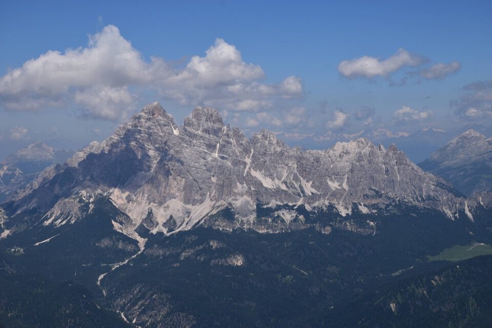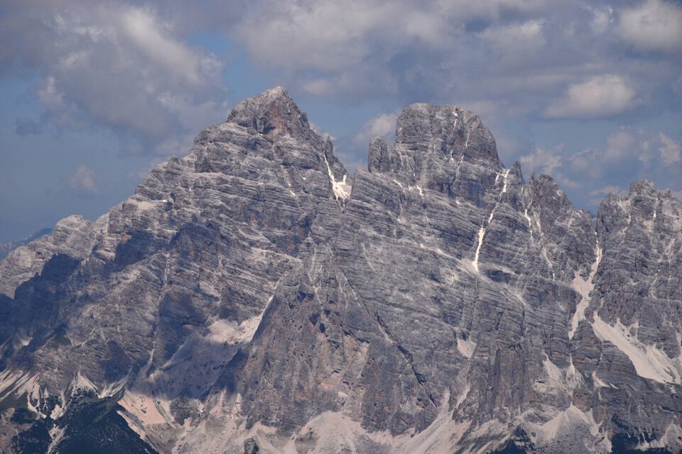 Cima del Tiziano con a sx le Cime di Vallonga salite il giorno prima.