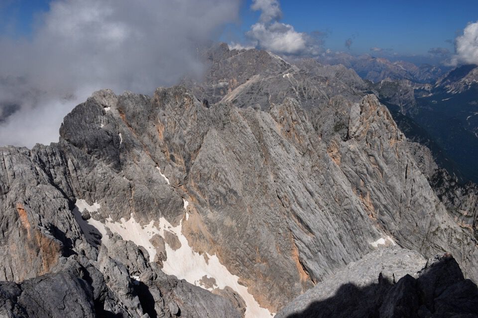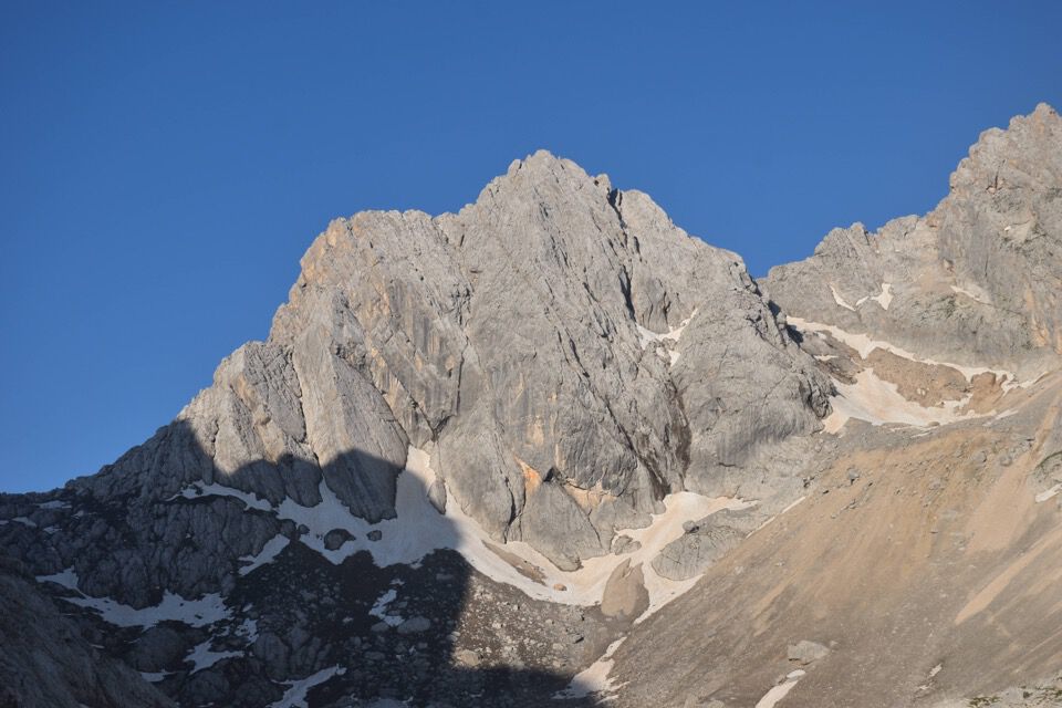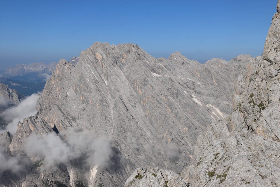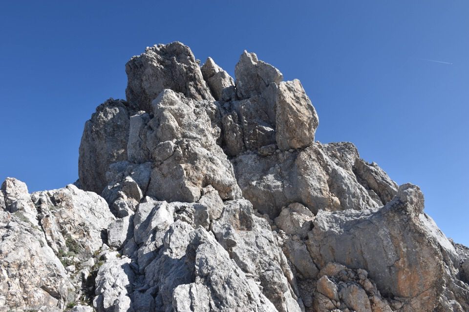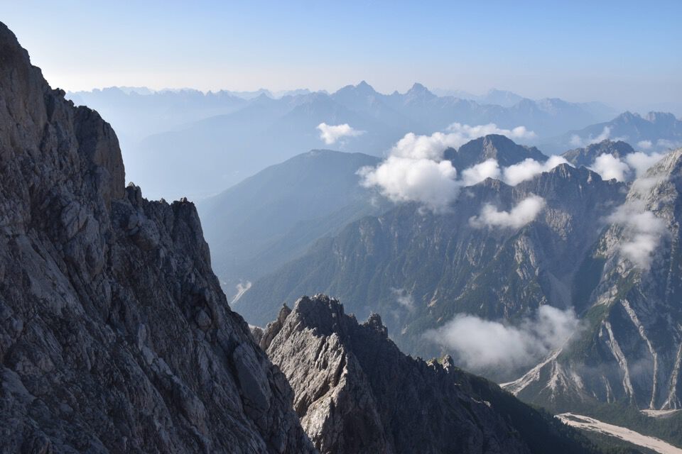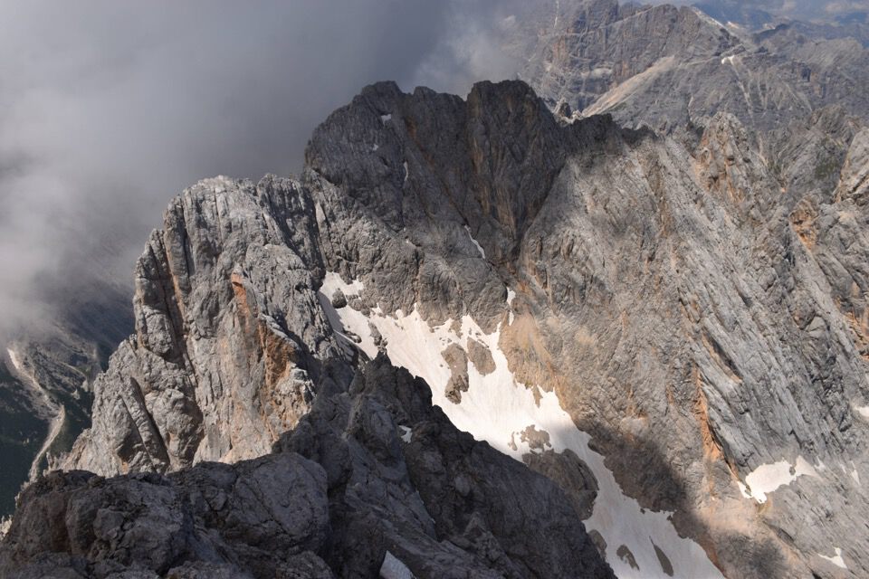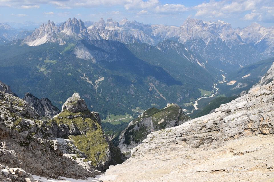 Cima del Tiziano con a sx le Cime di Vallonga salite il giorno prima.