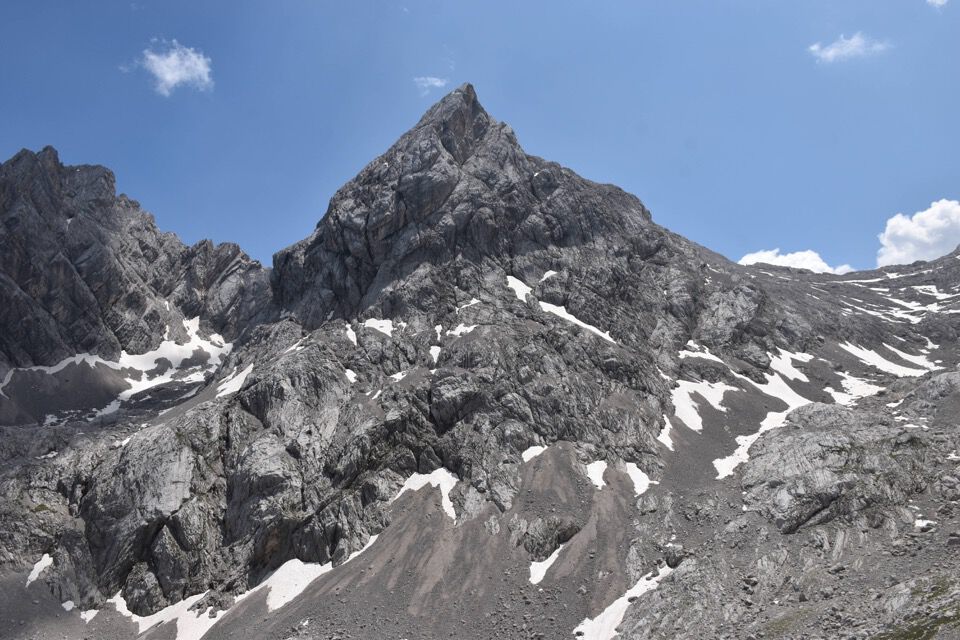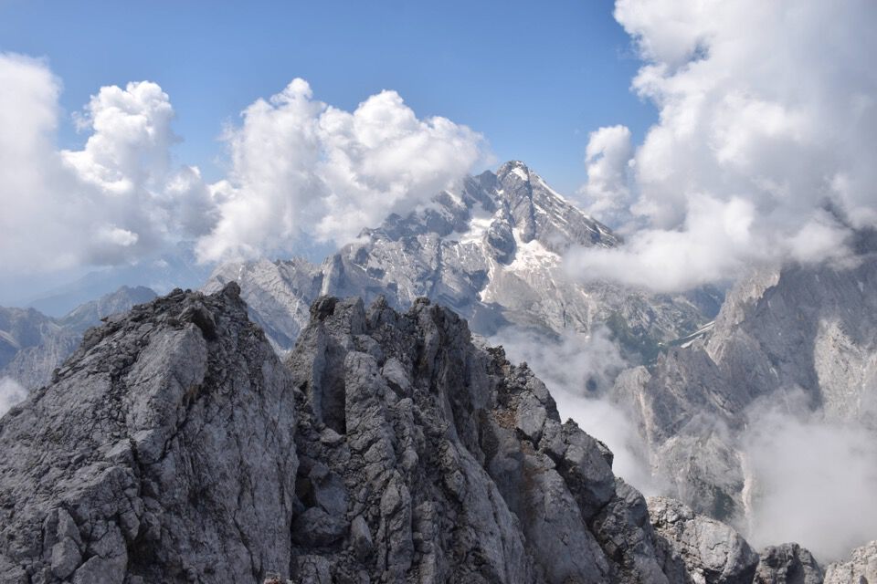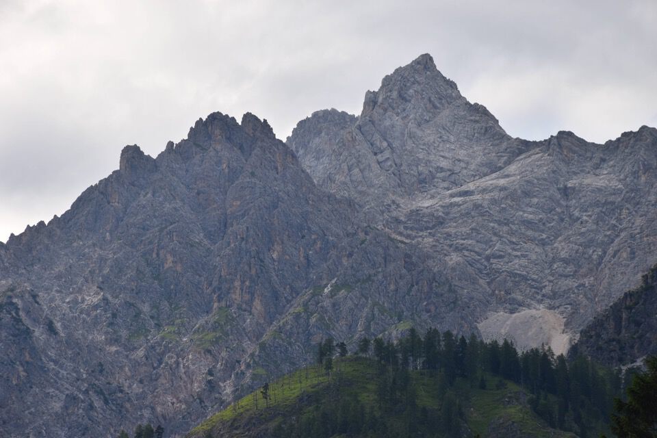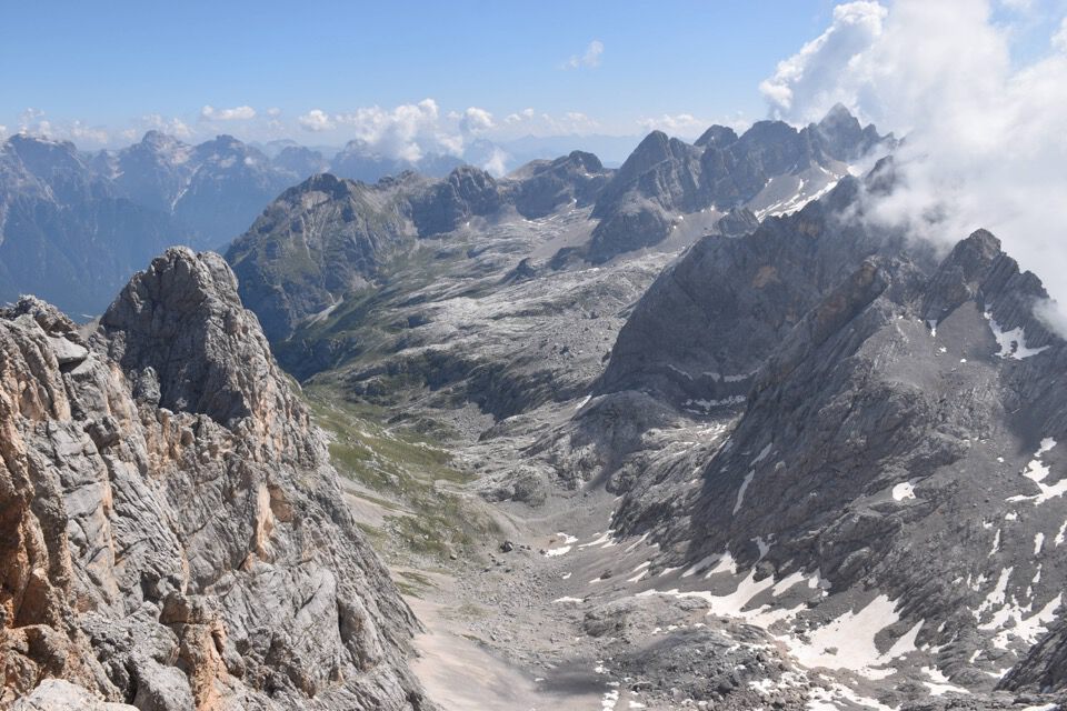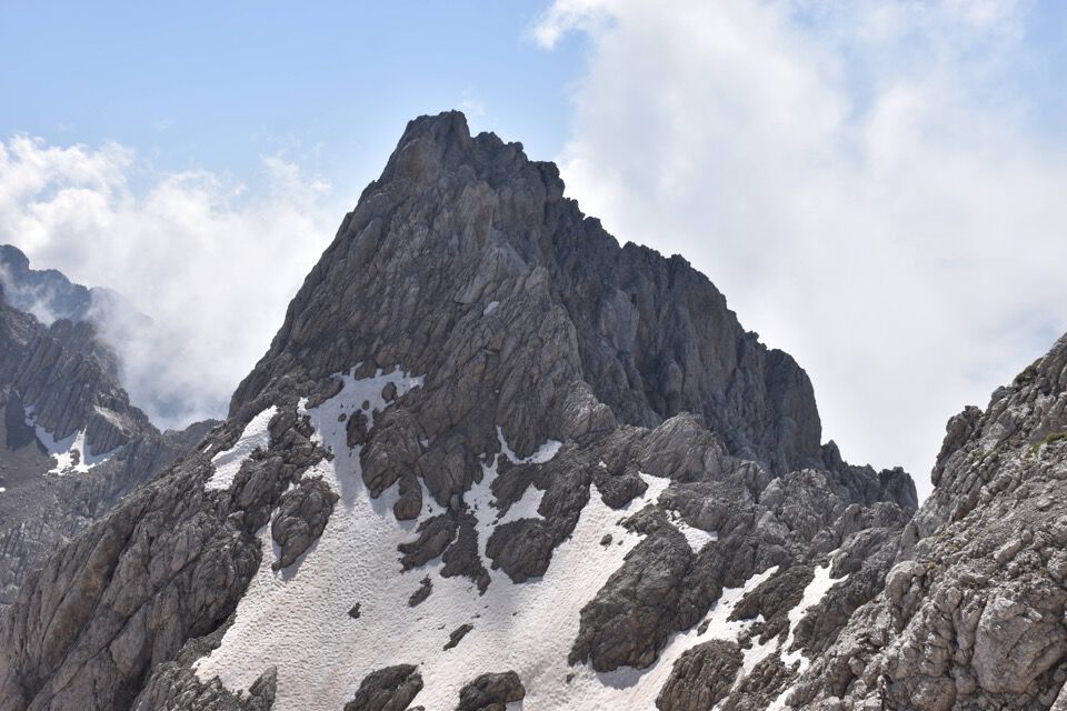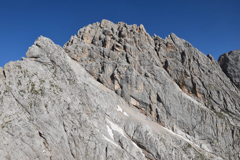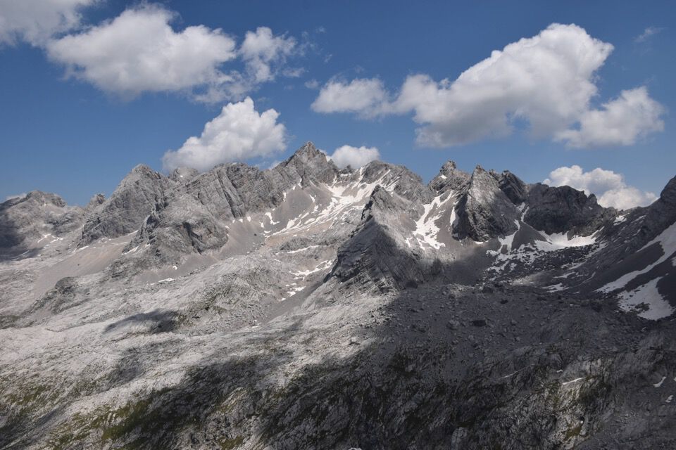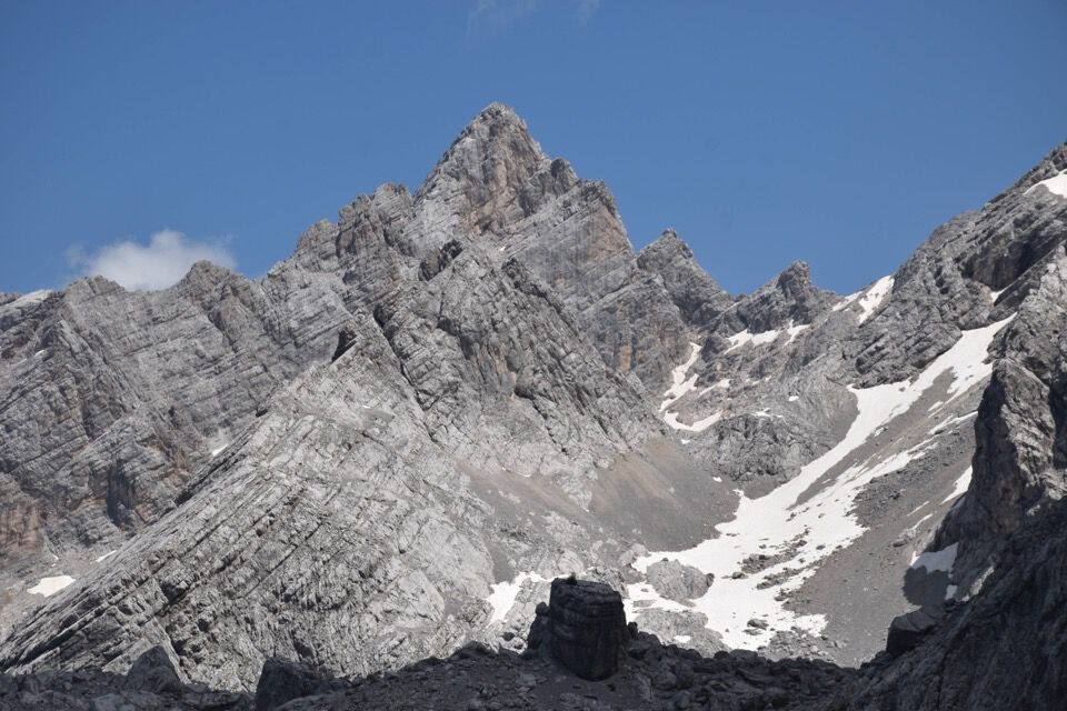 Cima del Tiziano con a sx le Cime di Vallonga salite il giorno prima.