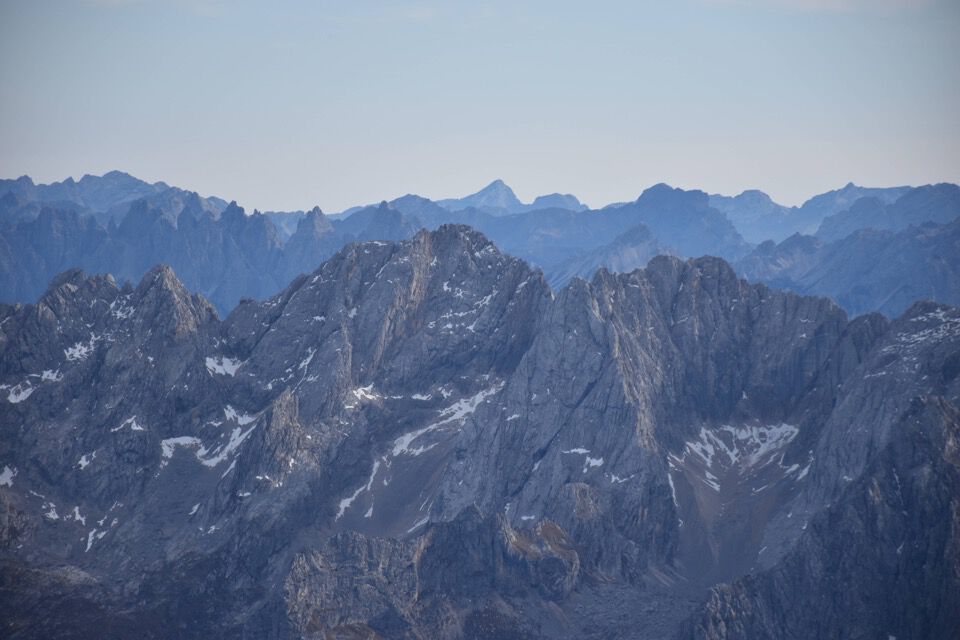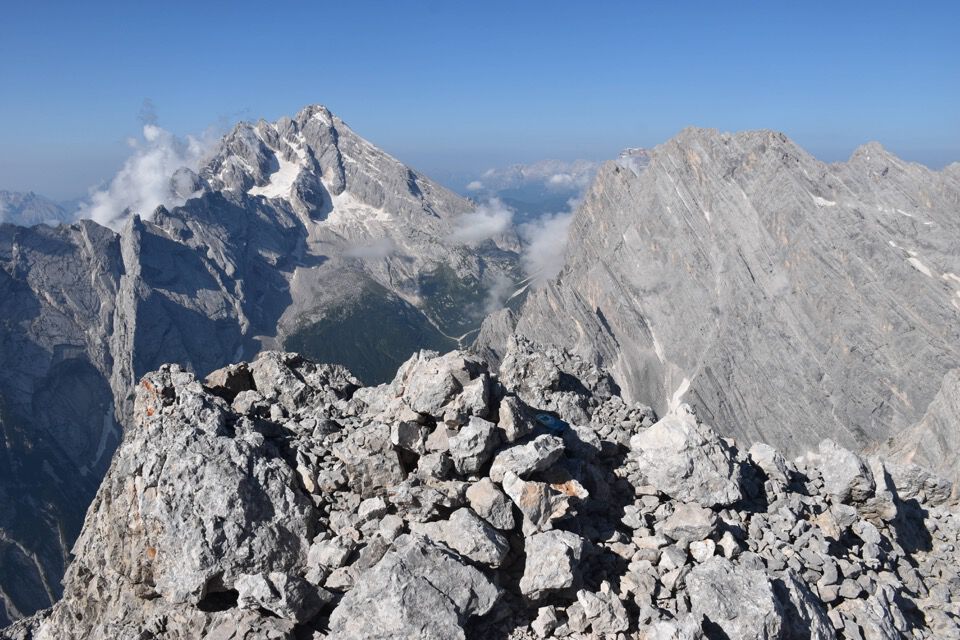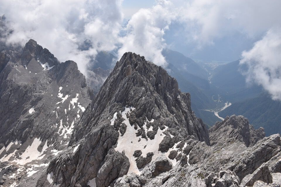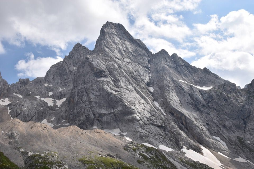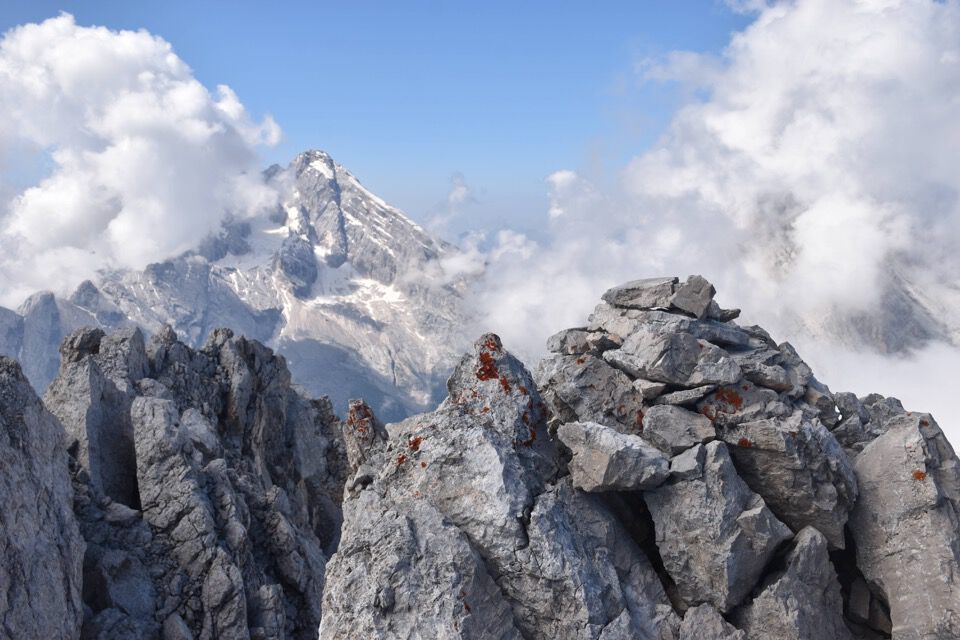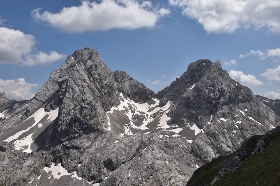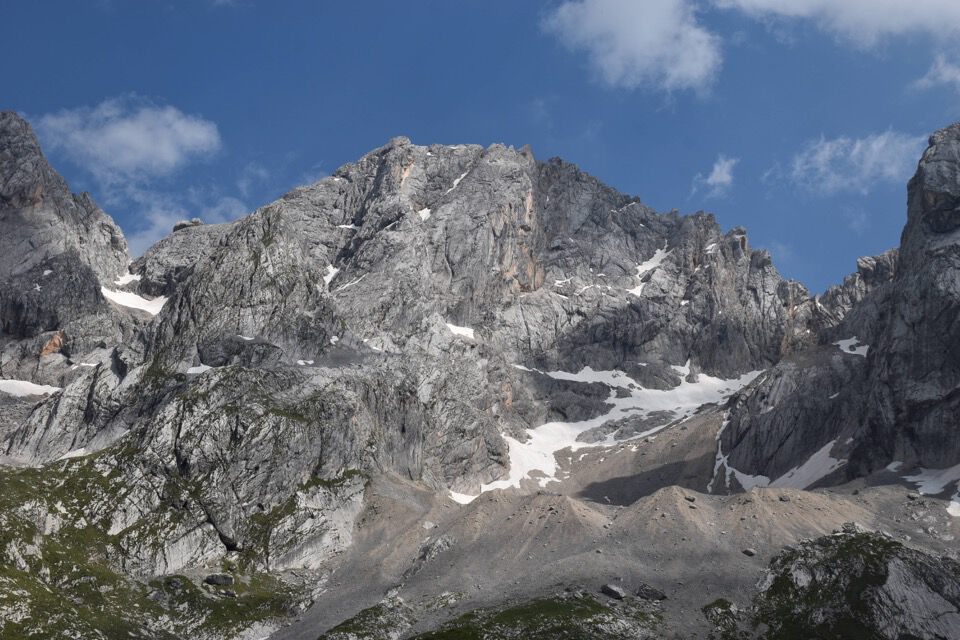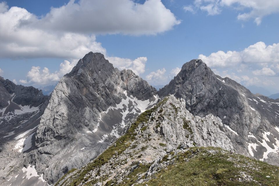 Cima del Tiziano con a sx le Cime di Vallonga salite il giorno prima.