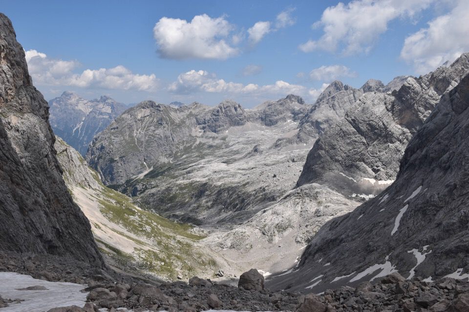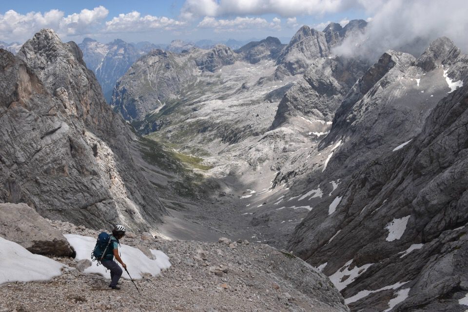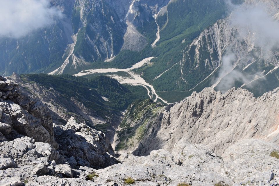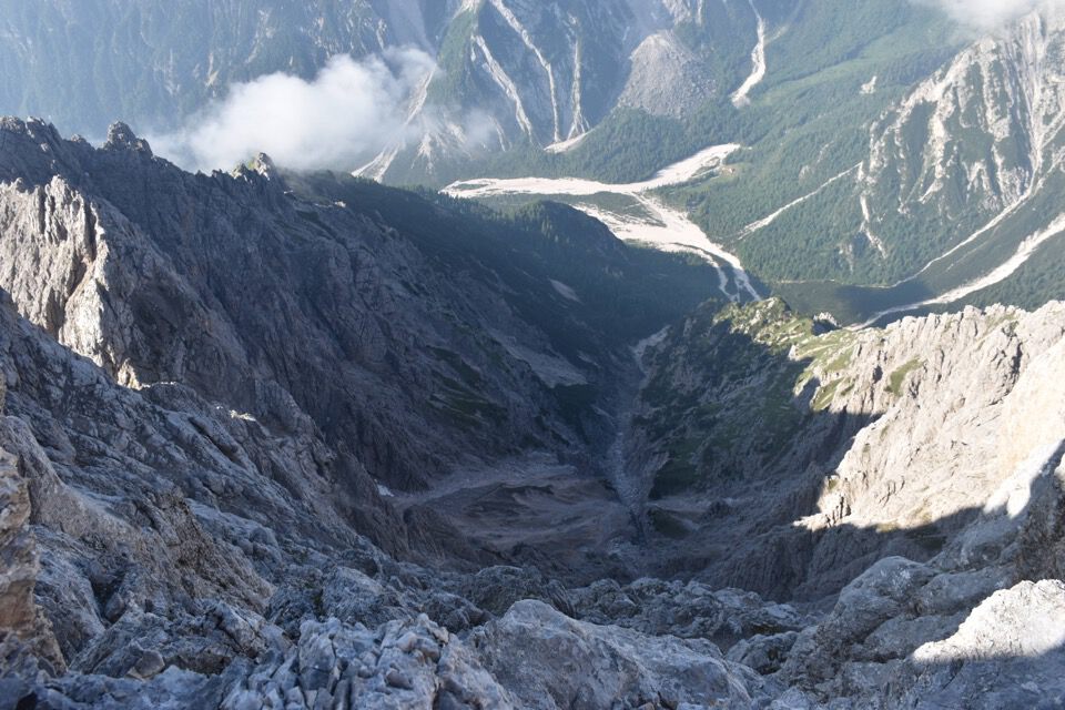 Da forcella Tiziano il baratro verso la val d'Oten: val Pelosana.