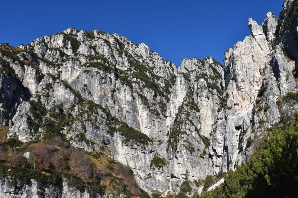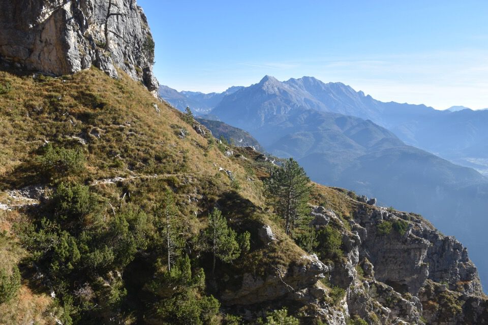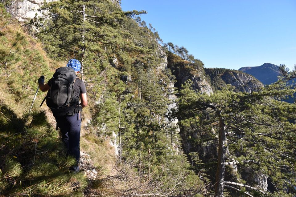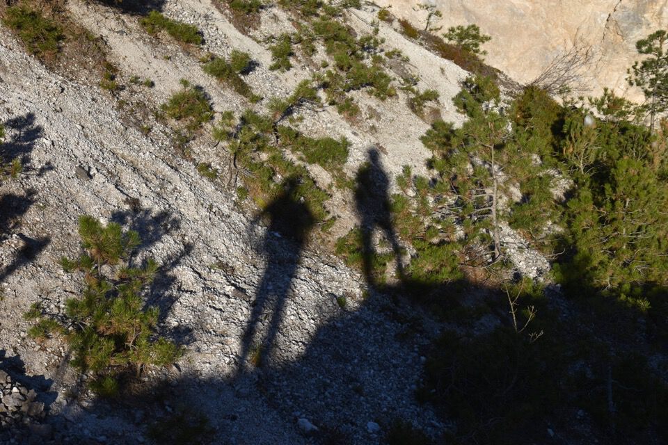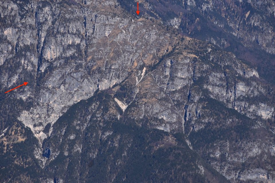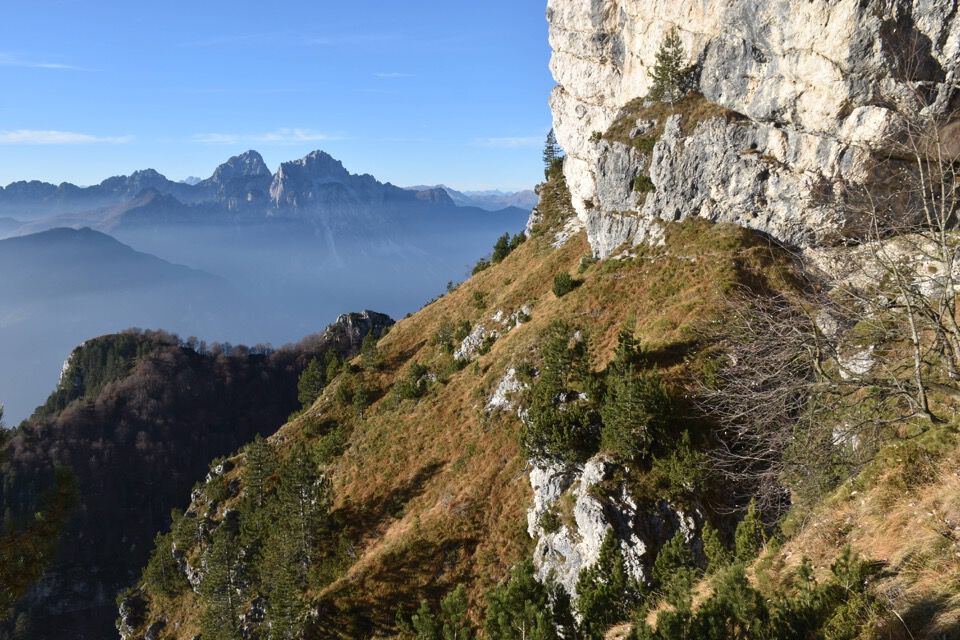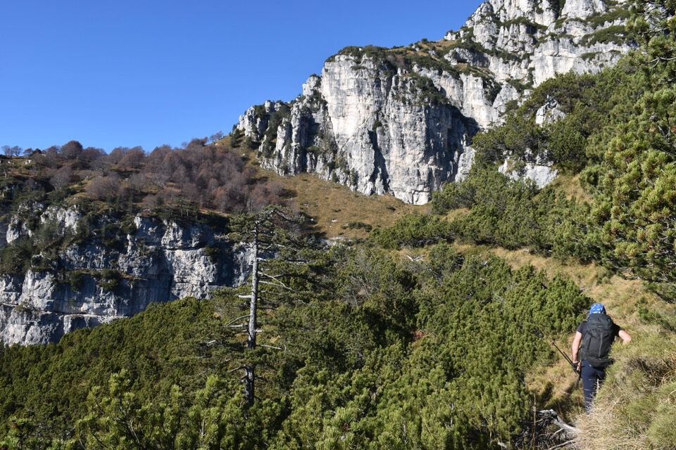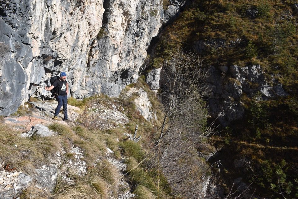 Torno dopo due anni a ripercorrere il magnifico cengione sud, relazionato da Armellini in Trois Neris, e approfitto per percorrere, assieme a Kelen, anche la bella cengia sopra il rio Breizi che da tempo desideravo esplorare.
