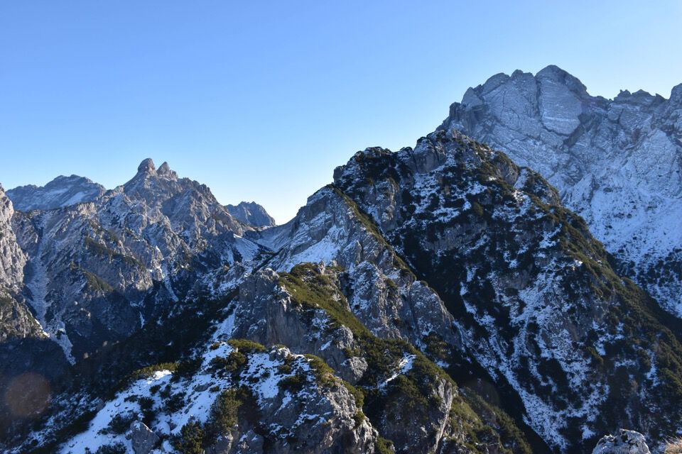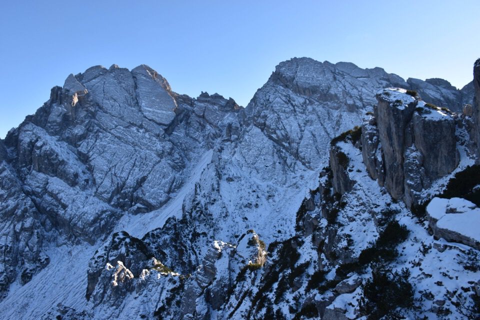Non riesco a distogliere gli occhi dalle bellissime placconate che caratterizzano il versante nord di tutti i monti circostanti.