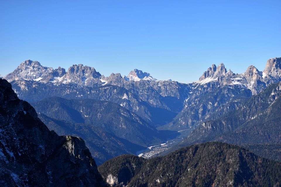 Un panorama così bello non me l'aspettavo: Auronzo con tante belle e famose crode dolomitiche.