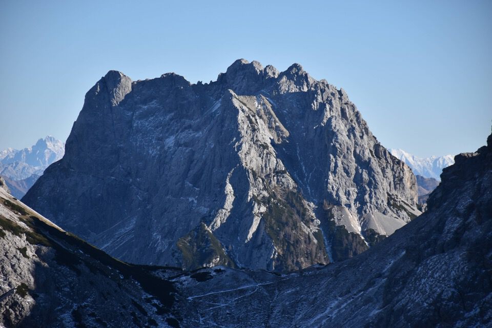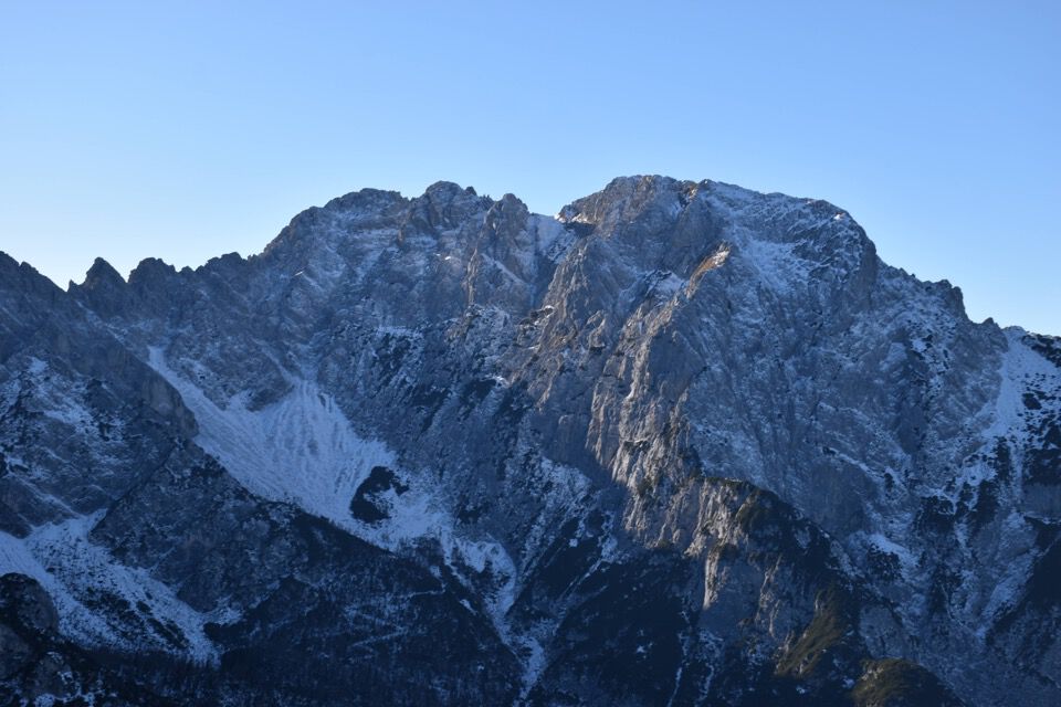 La possente mole del Crìssin d'Auronzo, con più a sx le altre due cime del Crìssin: poco più che un mese fa ne ho percorso la cresta.